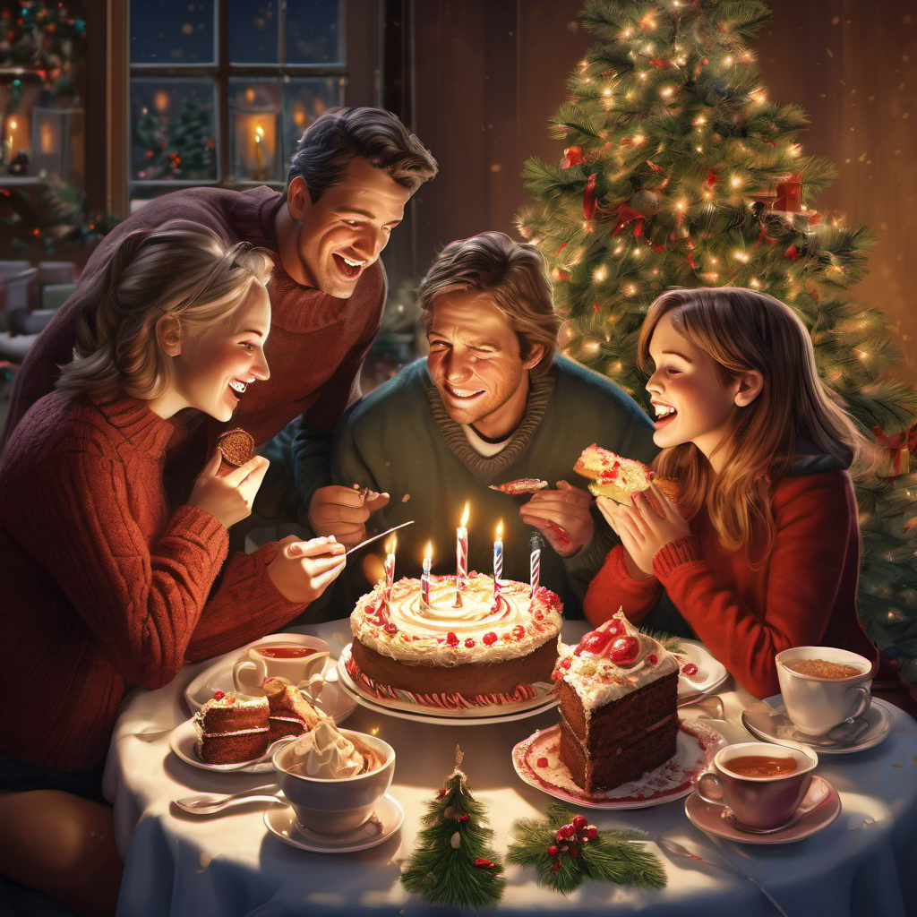 크리스마스 트리 아래에서 케이크를 먹는 사람들 - AI Image 11 | ImageGen