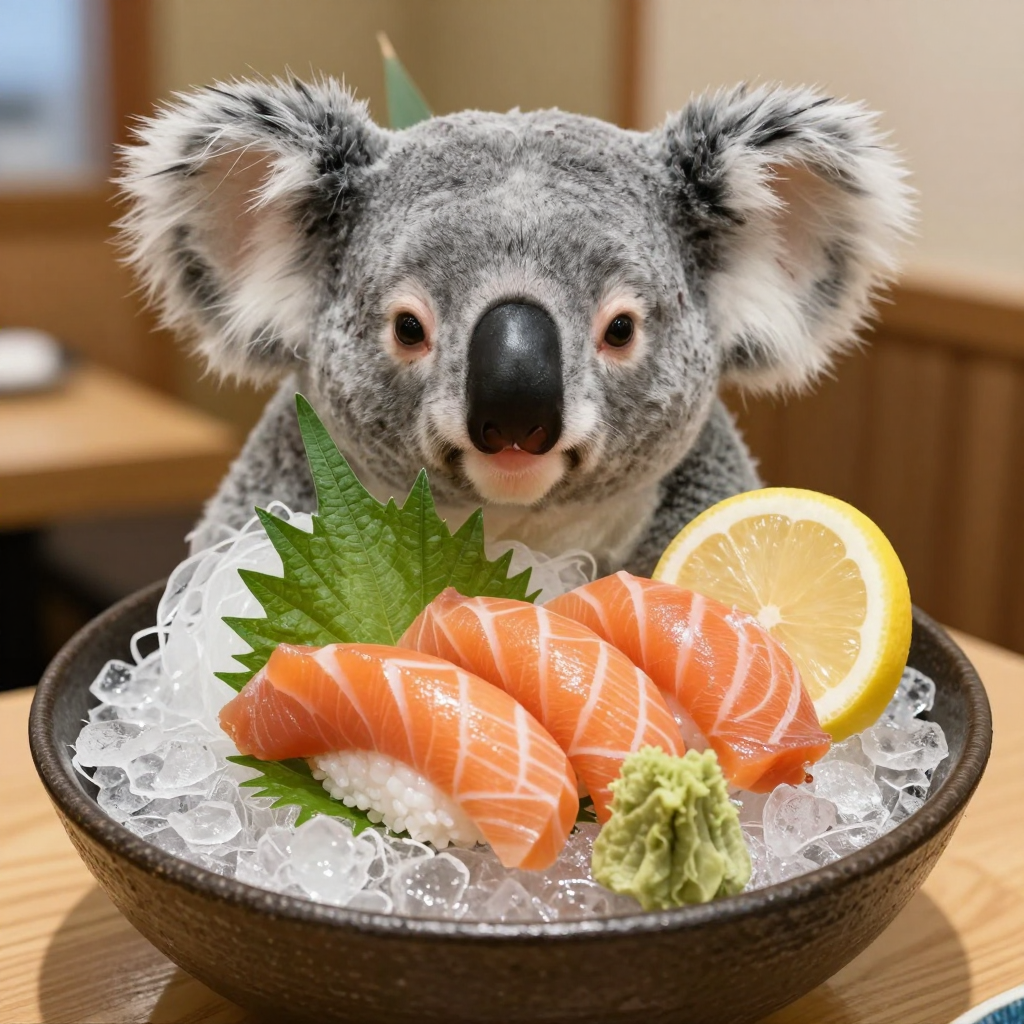 at the city 연어 초밥 먹는 코알라 - AI Image 144 | ImageGen