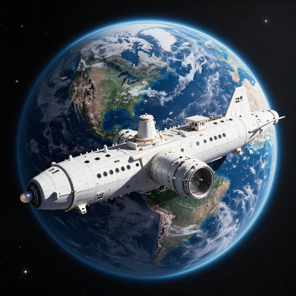 거대한 우주선이 지구 궤도에 정박해 있는 모습 - AI Image 208 | ImageGen