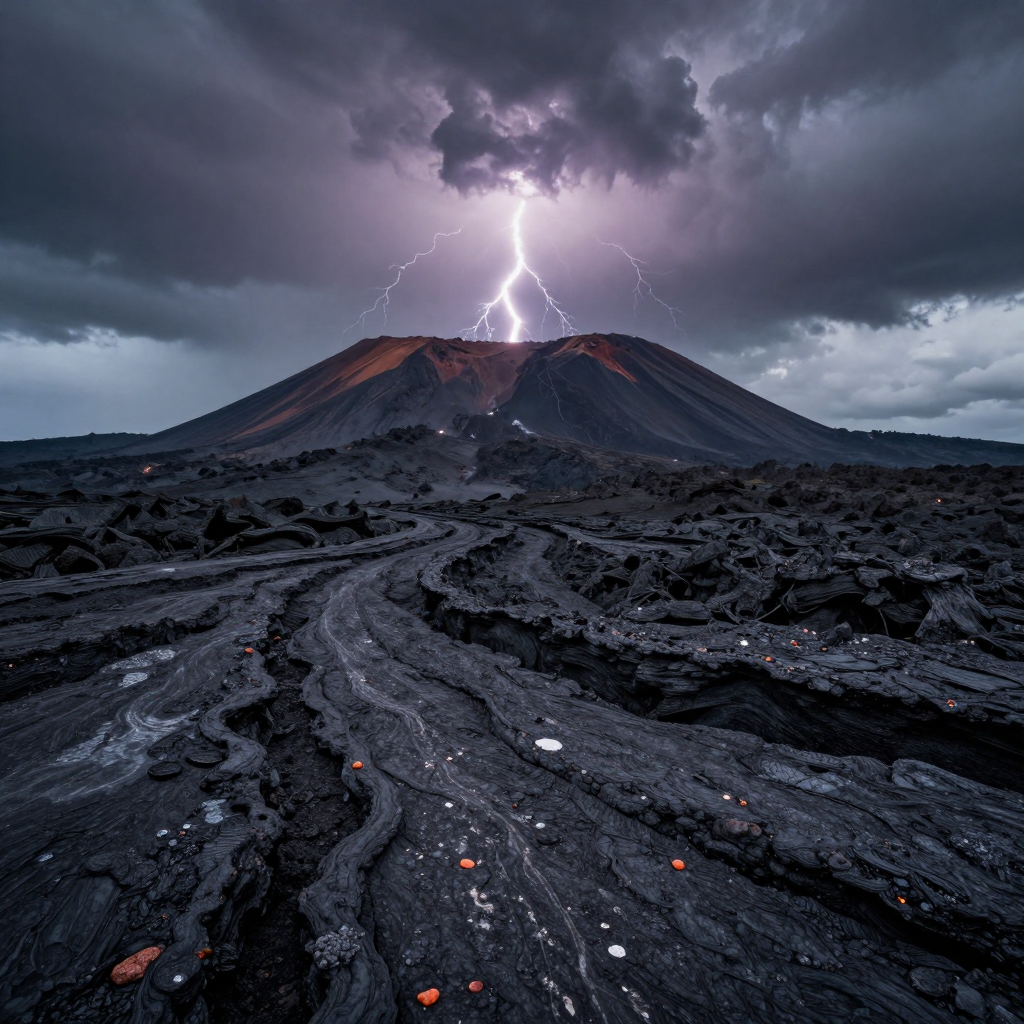 용암이 흐르는 화산 지대와 번개 - AI Image 227 | ImageGen