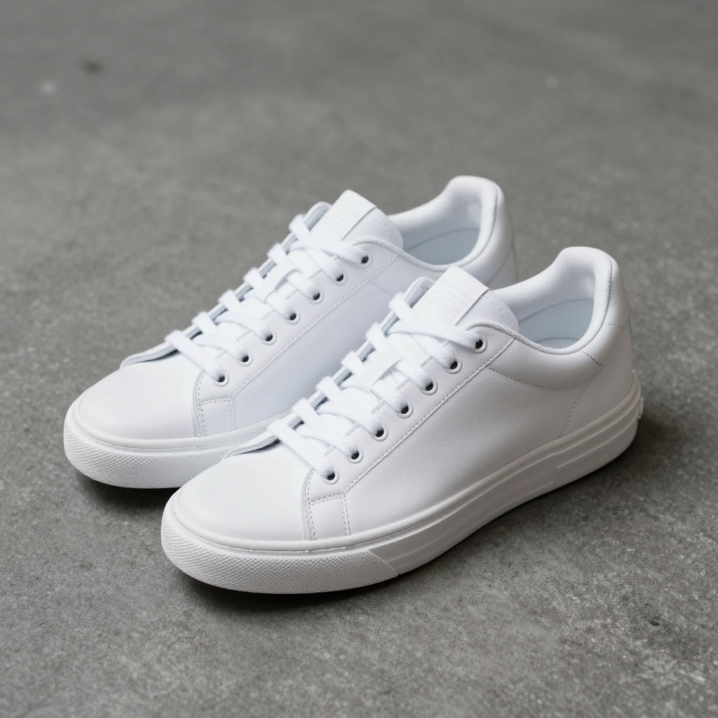 미래지향적인 디자인의 화이트 스니커즈 제품 사진 - AI Image 237 | ImageGen