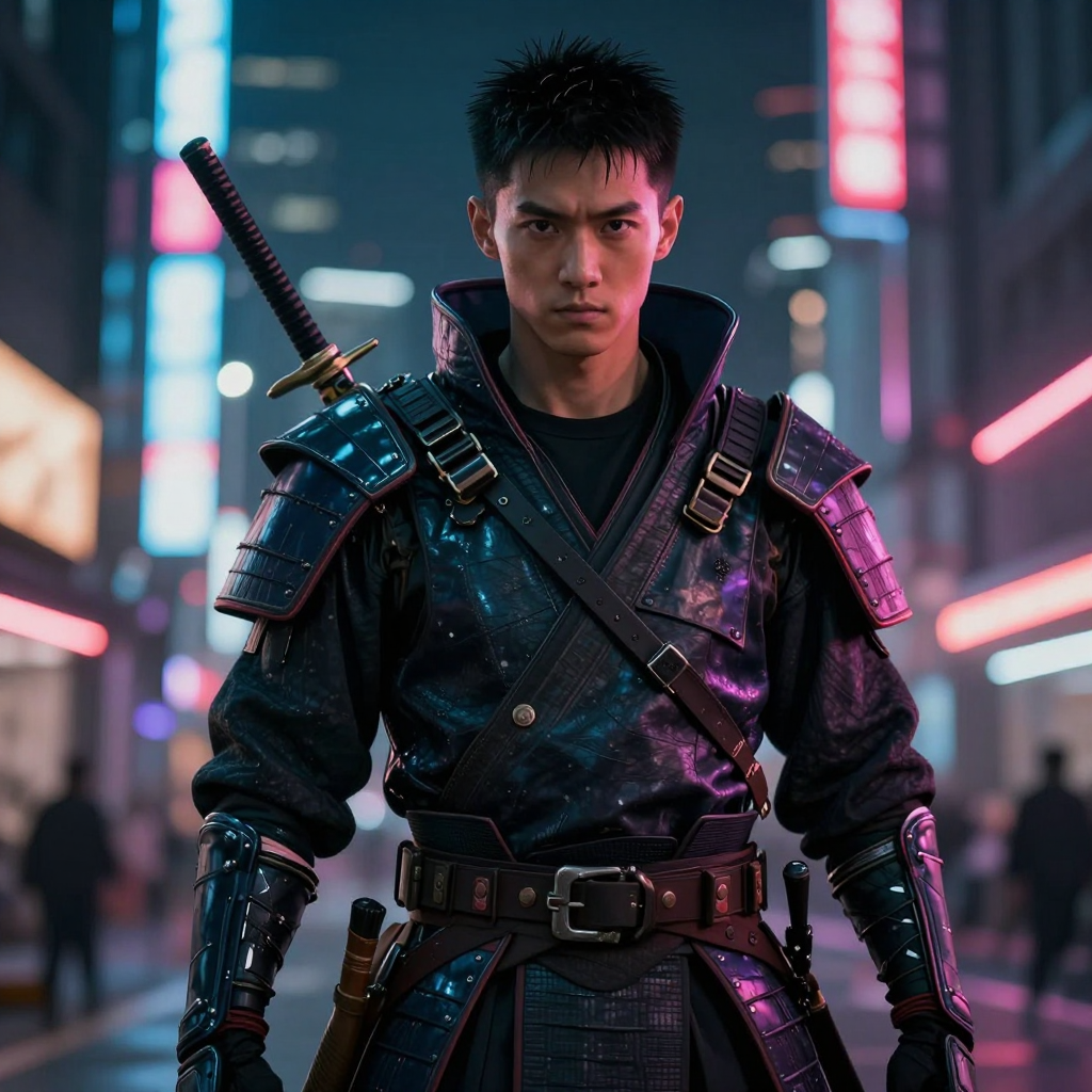 사이버펑크 스타일의 사무라이 전사 - AI Image 320 | ImageGen