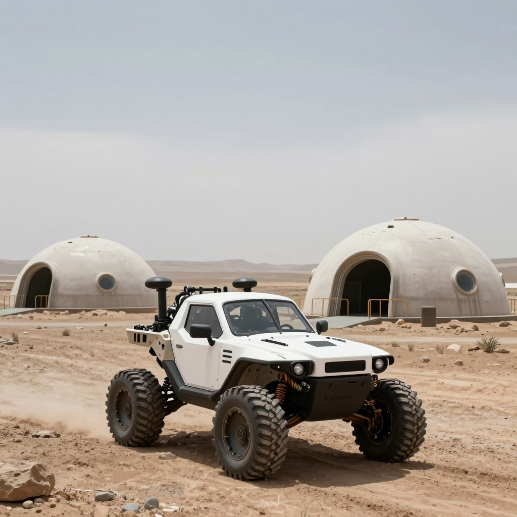 화성 식민지의 돔 형태 거주지와 로버 - AI Image 330 | ImageGen