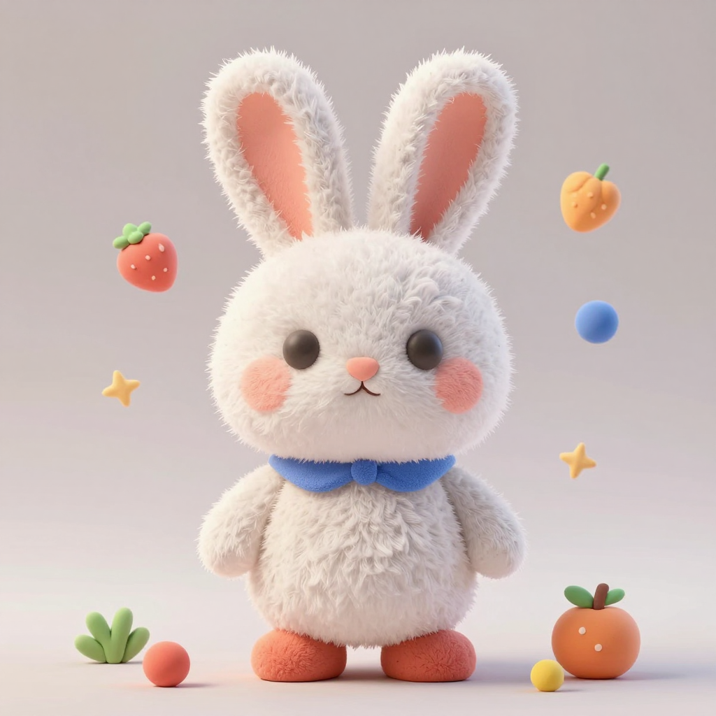 폭신폭신한 질감의 3D 클레이 애니메이션 스타일 토끼 - AI Image 334 | ImageGen