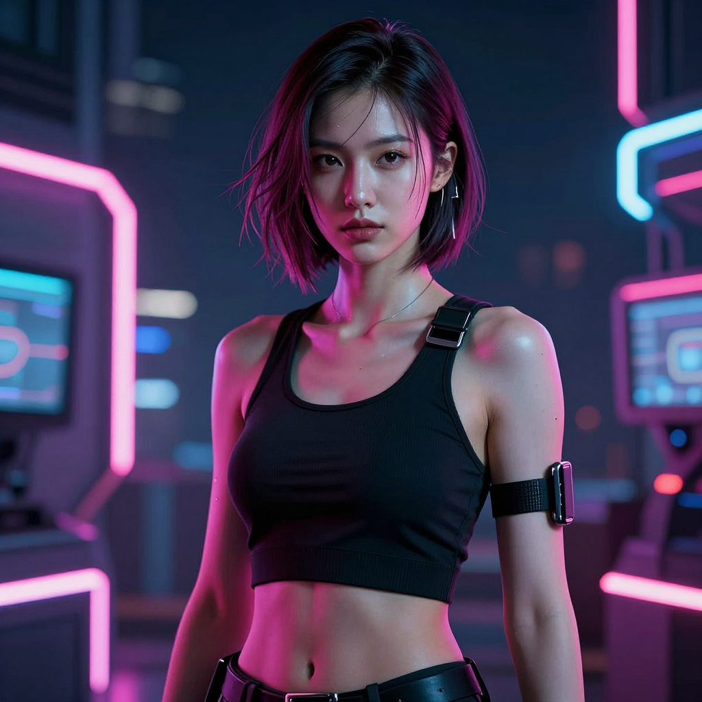 네온 빛이 감도는 사이버펑크 여성