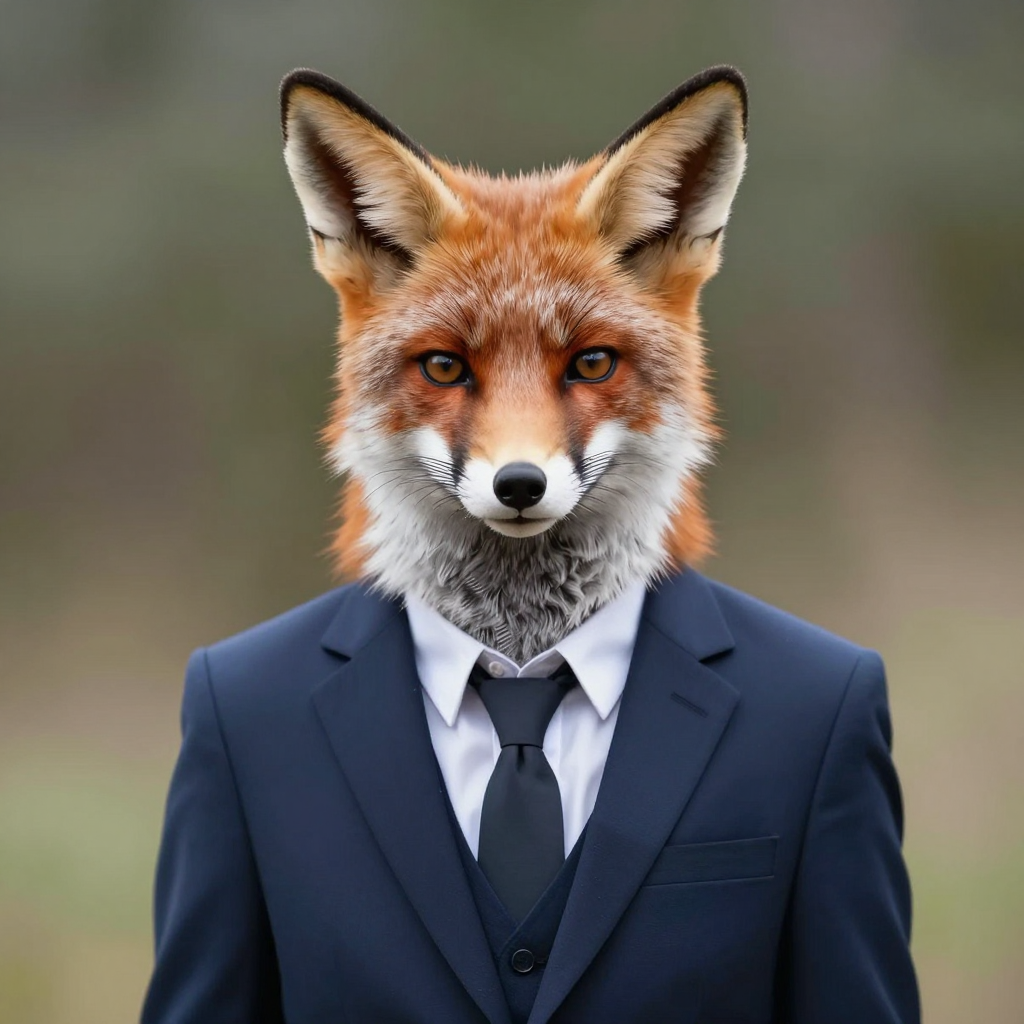 말끔한 정장을 차려입은 똑똑해 보이는 여우 - AI Image 354 | ImageGen