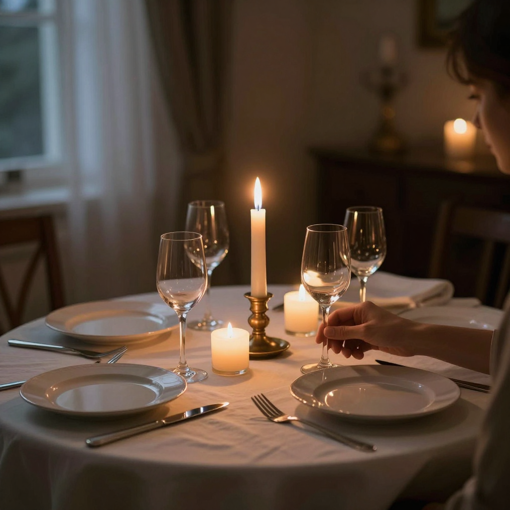 촛불이 켜진 로맨틱한 저녁 식사 테이블 - AI Image 368 | ImageGen