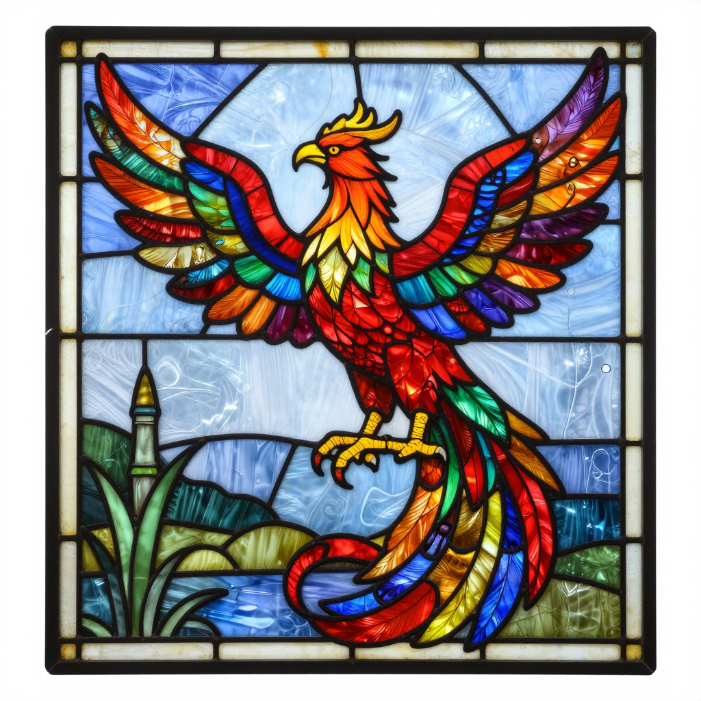 불사조가 그려진 화려한 스테인드글라스 - AI Image 386 | ImageGen