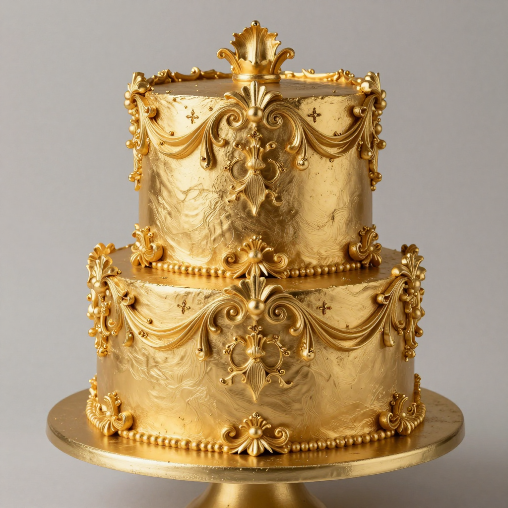 금박 장식이 올라간 화려한 로코코 스타일 케이크 - AI Image 393 | ImageGen