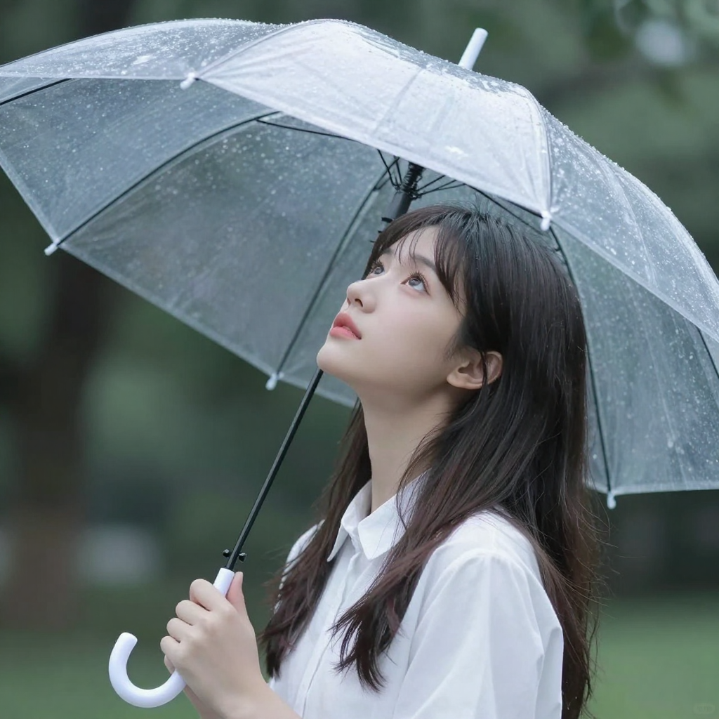 투명 우산을 쓰고 하늘을 보는 소녀 - AI Image 437 | ImageGen