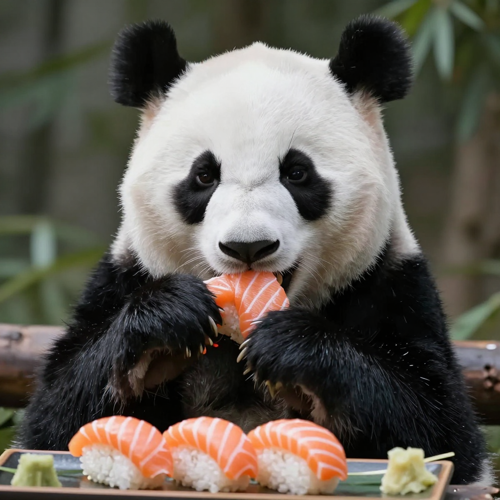 연어 초밥을 먹는 판다 - AI Image 454 | ImageGen