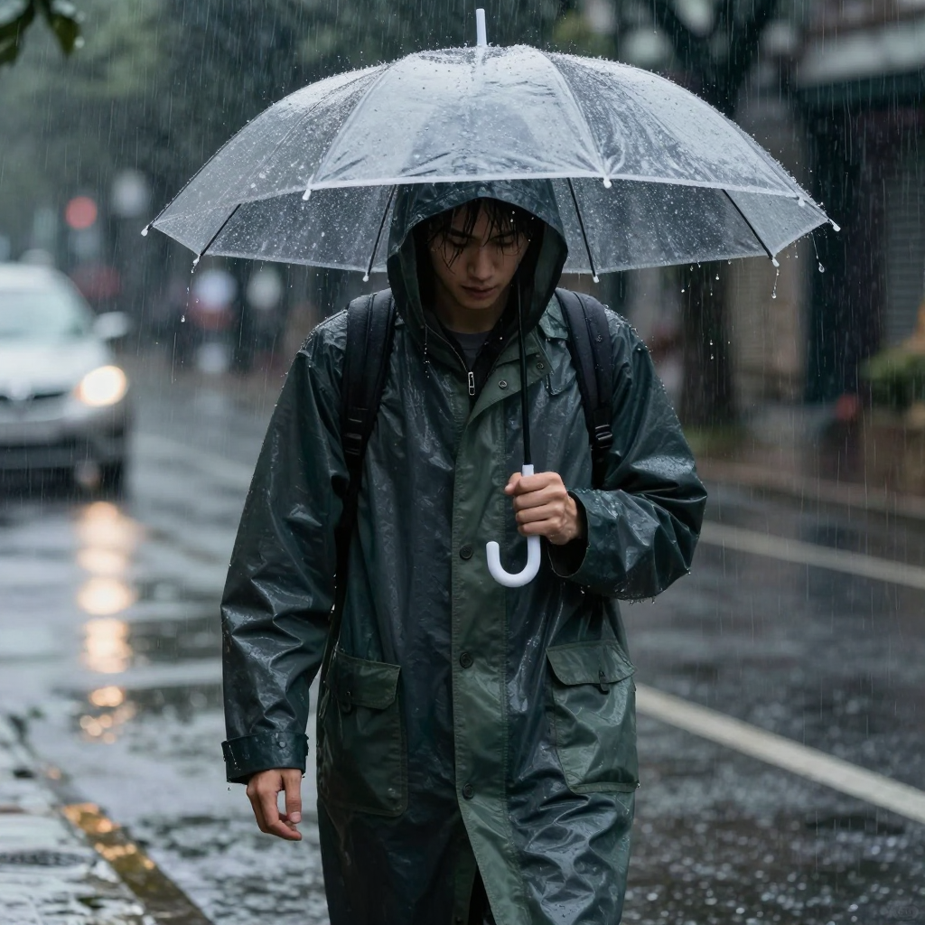 우비를 입고 비를 맞는 사람 - AI Image 519 | ImageGen