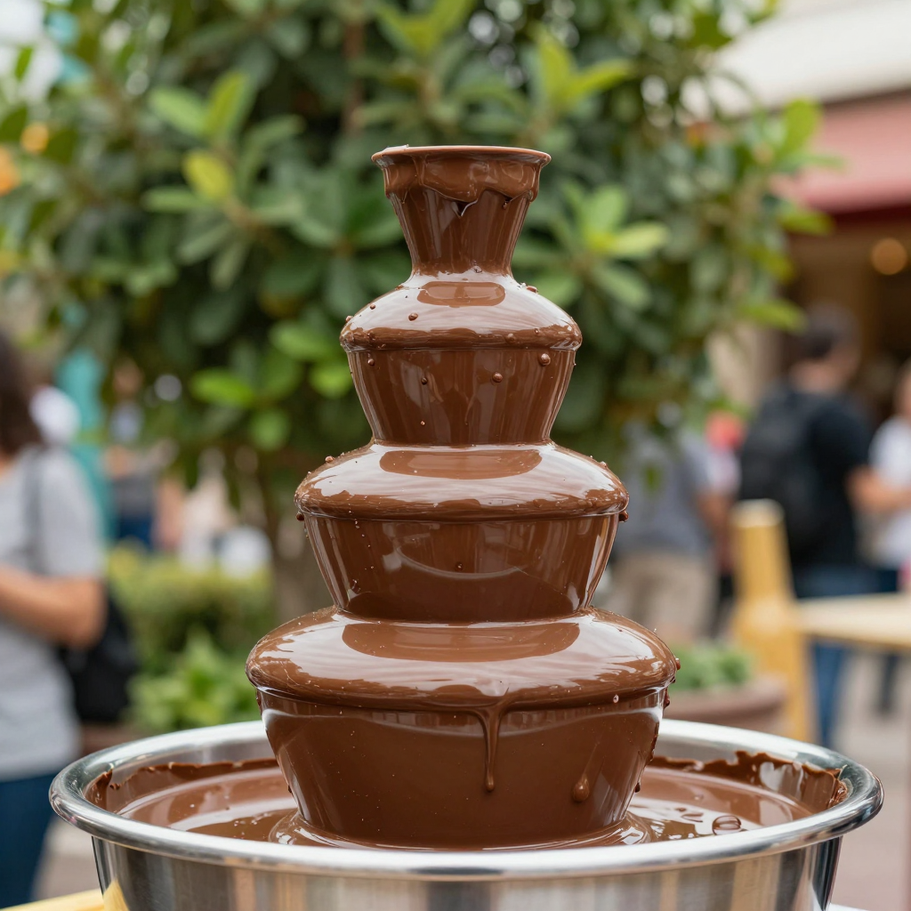 chocolate fountain, highly detailed, sharp focus, well composed, realistic anatomy, whimsical, vibrant colors