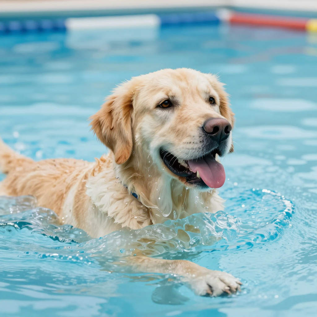 수영장에서 수영하는 골든 리트리버 - AI Image 609 | ImageGen