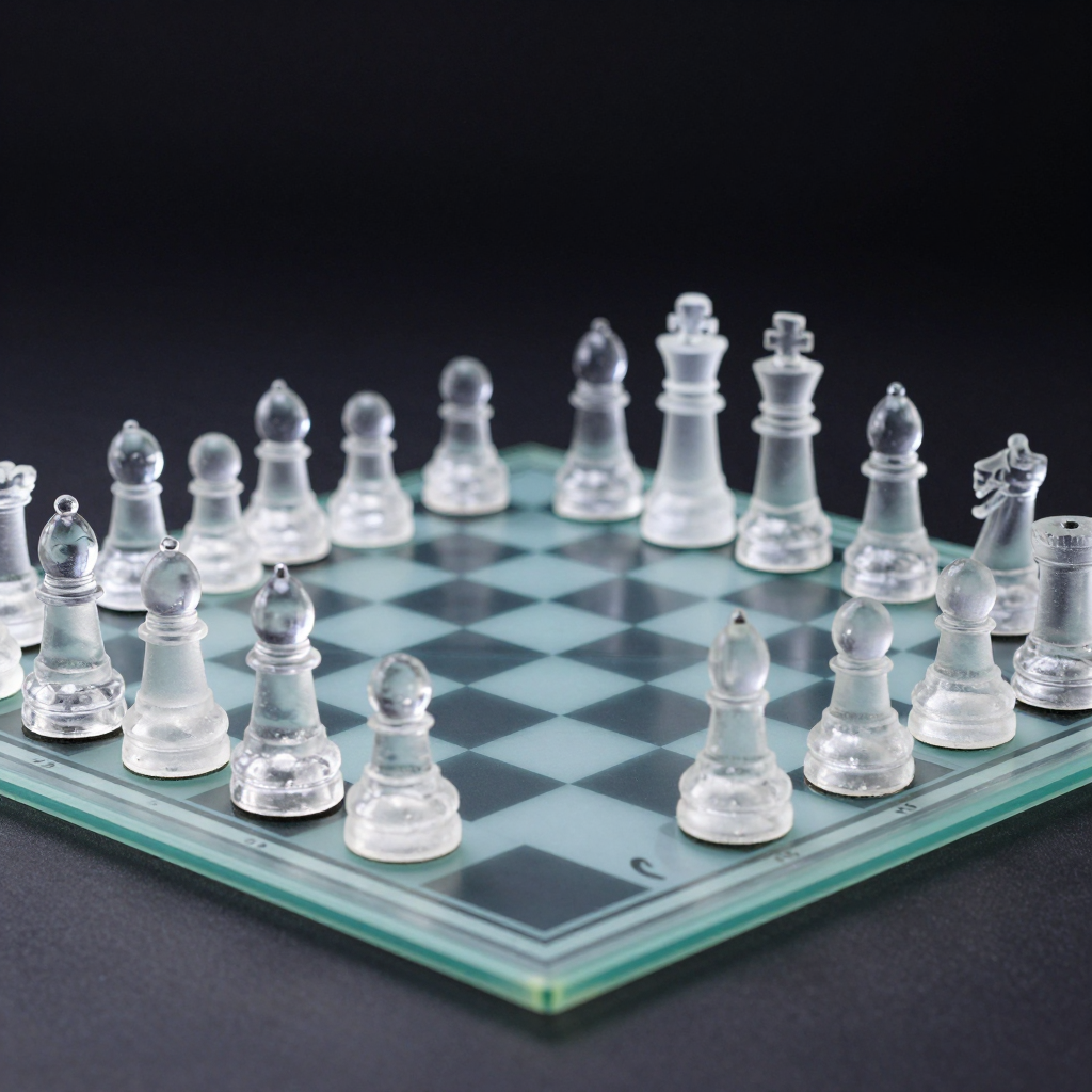 투명한 크리스털로 만들어진 체스 말과 체스판 - AI Image 612 | ImageGen