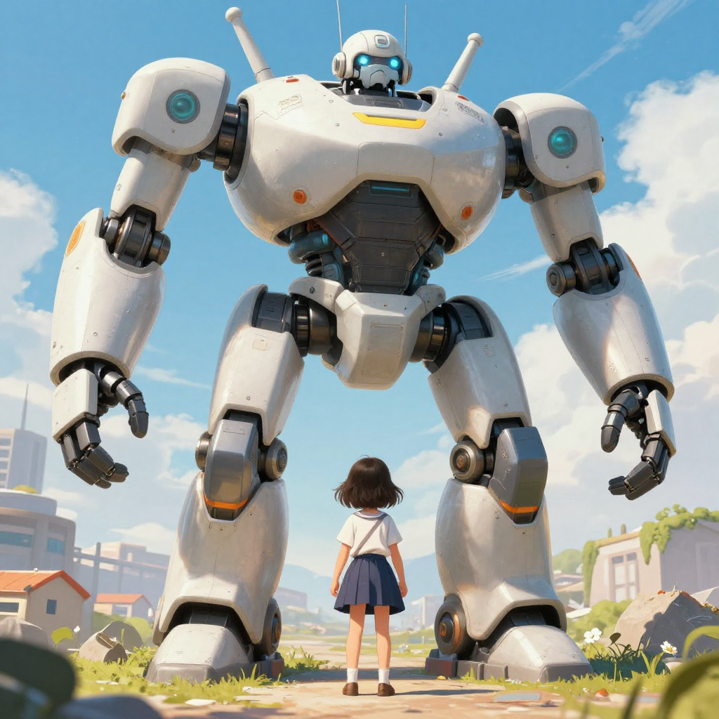 거대한 로봇과 교감하는 작은 소녀 - AI Image 643 | ImageGen