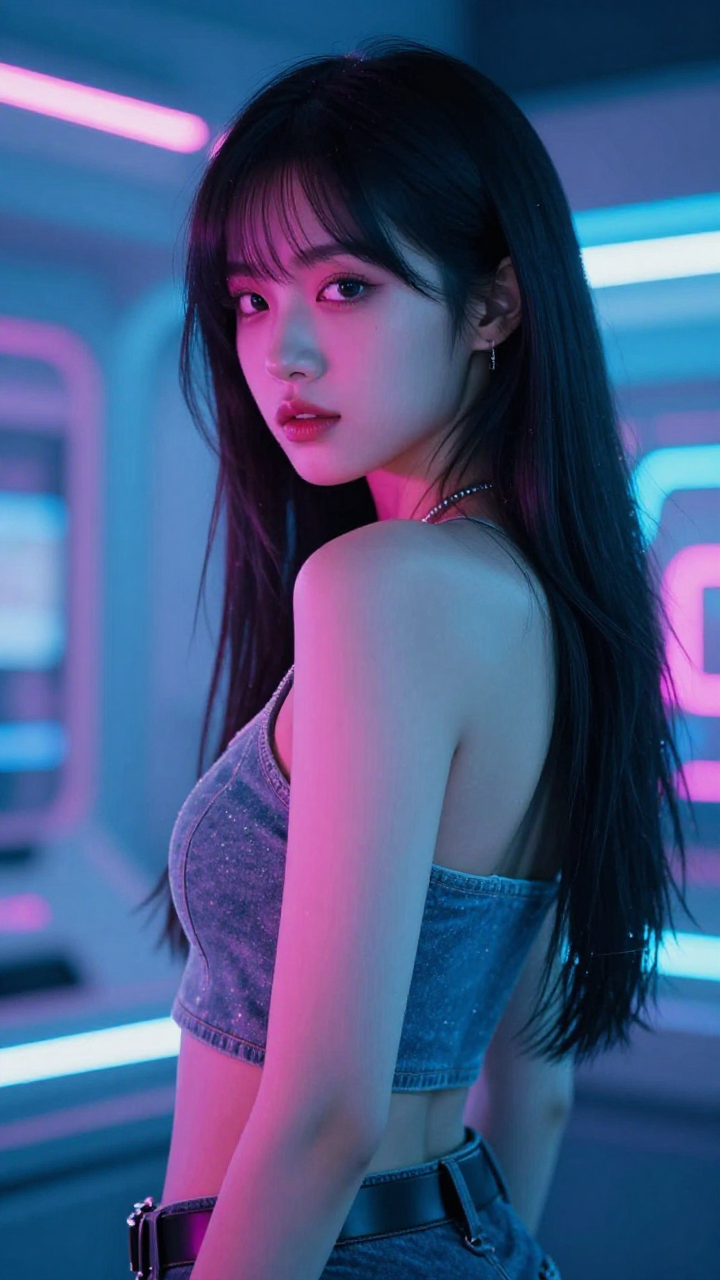 네온 빛이 감도는 사이버펑크 여성