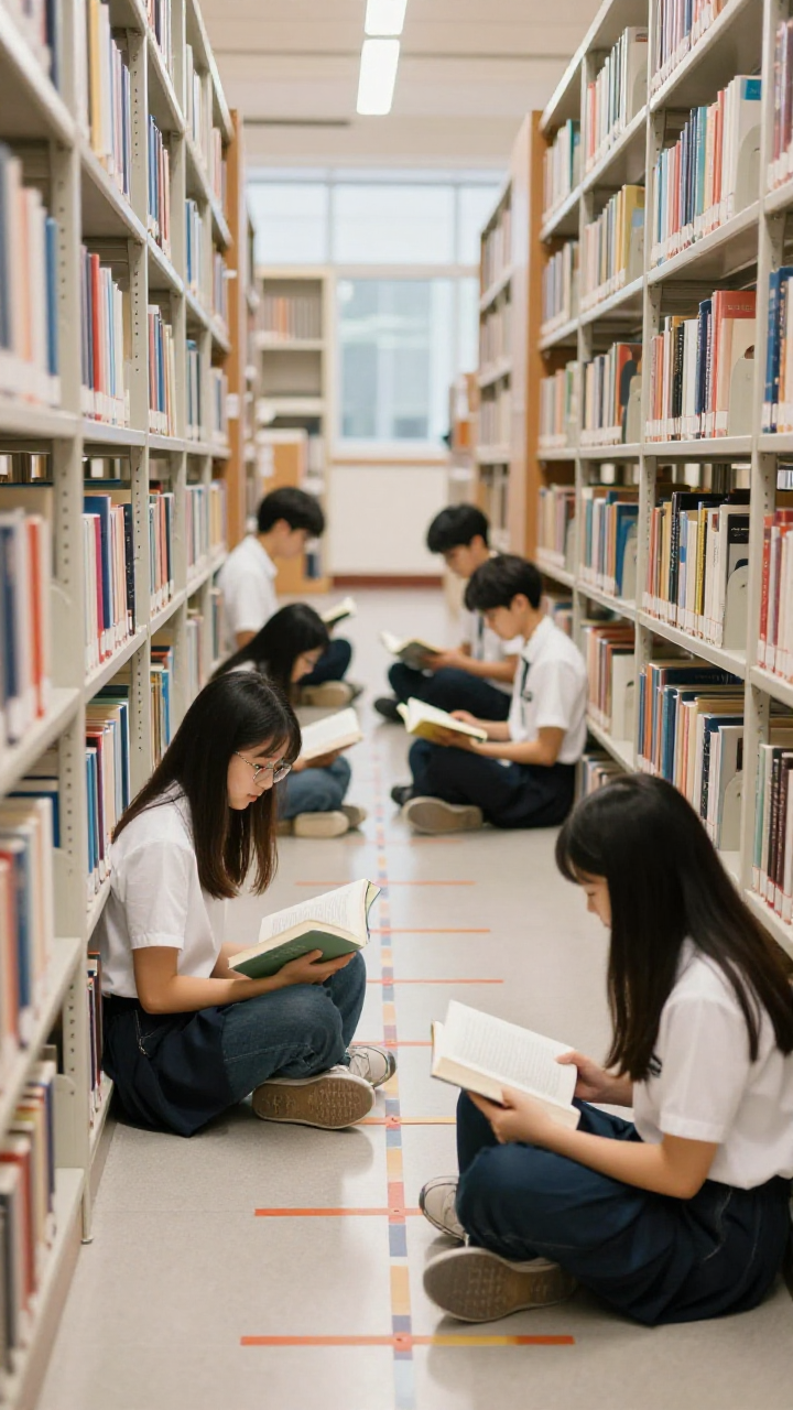 도서관 사다리에 앉아 책을 읽는 학생 - AI Image 670 | ImageGen