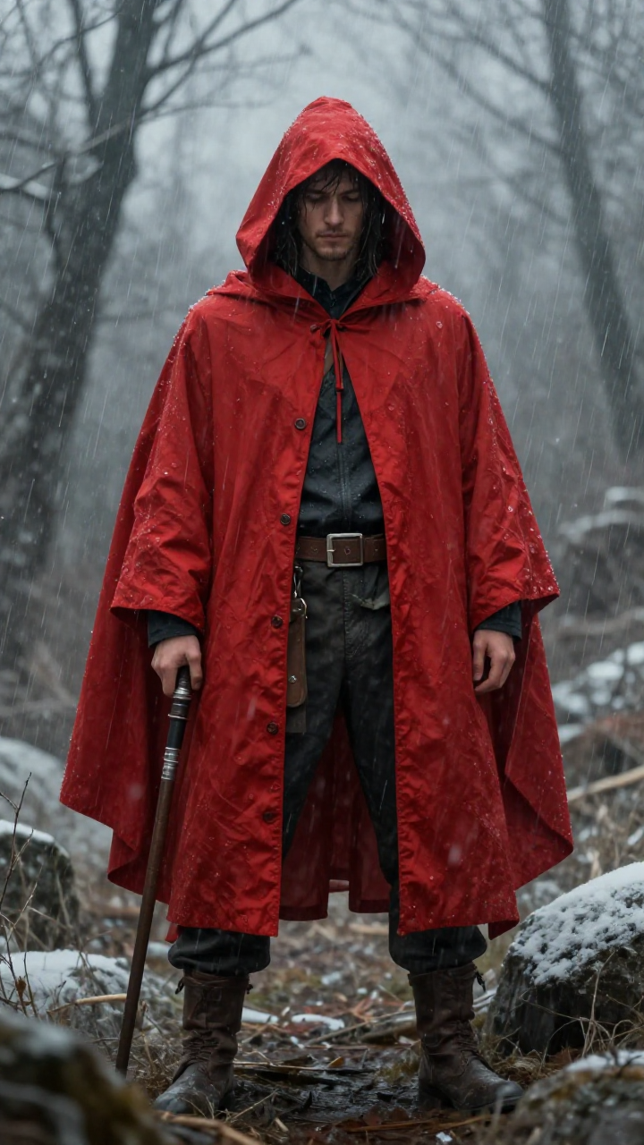 눈보라 속 붉은 망토를 두른 사냥꾼, 강렬한 판타지 캐릭터 아트 | Z-Image 이미지 by 카카오만보