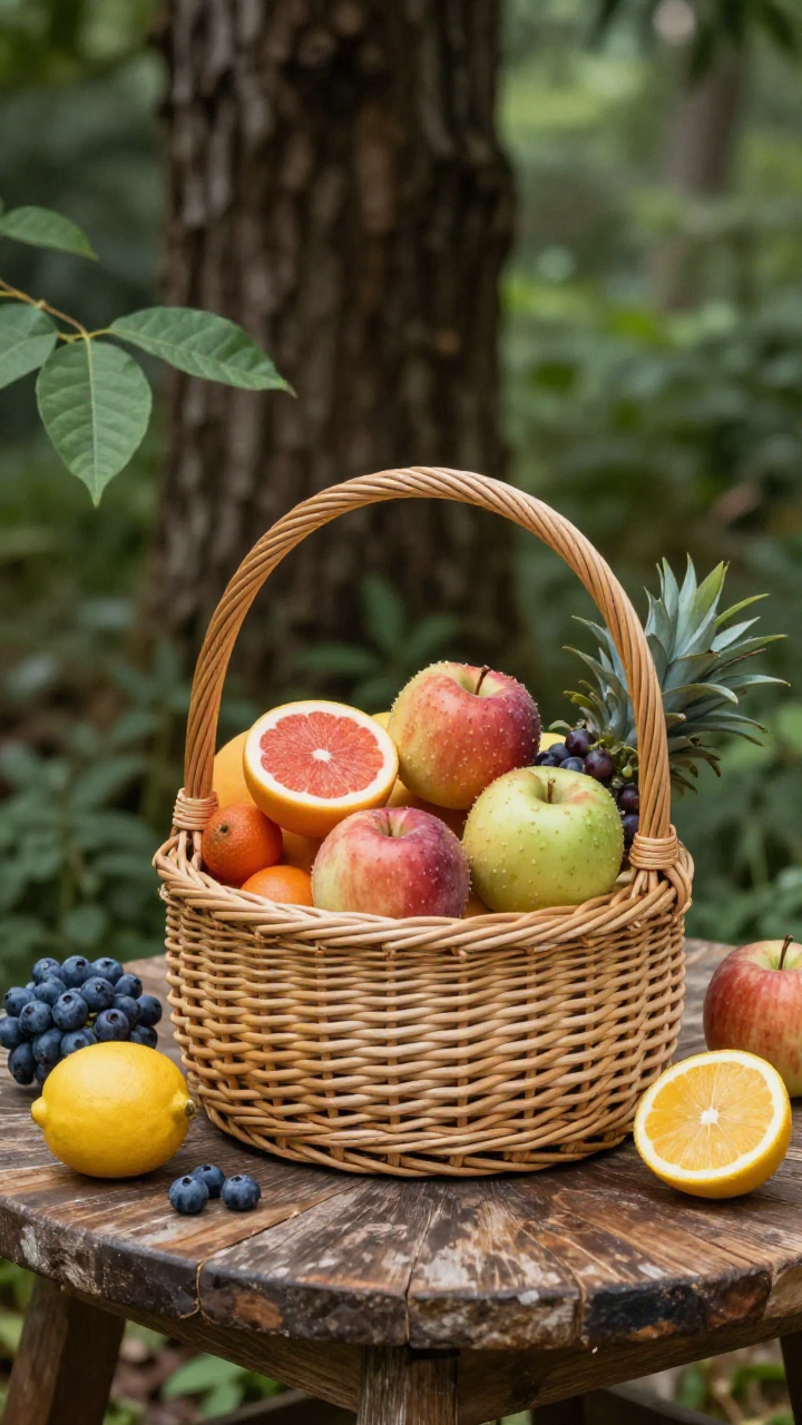 나무 탁자 위 신선한 과일 바구니 정물화 | Z-Image 이미지 by 카카오만보